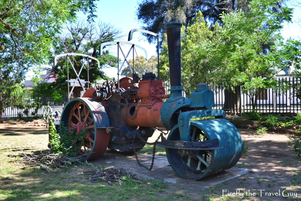 Another historic item to be found is the old Steam Roller. The steam roller was bought in 1938 to build streets and to prepare a few streets for tarring.